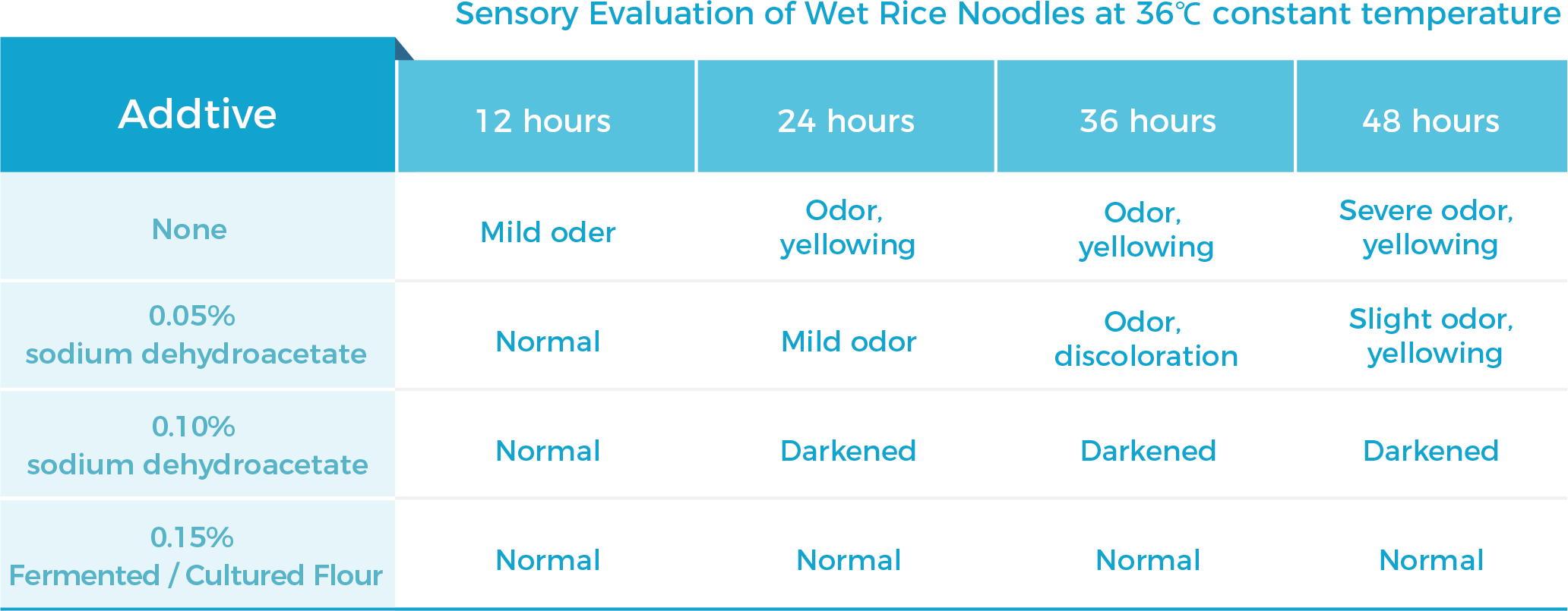 3、Sensory evaluation: Fermented / Cultured Flour has no significant effect on the sensory of wet rice noodle.