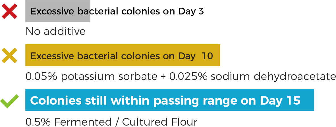 2、Broad-spectrum antibacterial: Effective against bacteria, molds, yeasts, significancantly reduce colony count and cake mold growth.